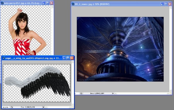 2.Siapkan tiga gambar yang diperlukan seperti disebut di atas, gambar artis, gambar sayap, dan gambar background sebagai latar belakang gambar. Tentunya gambar artis dan sayap telah dilakukan pengeditan seperti nomor 1.